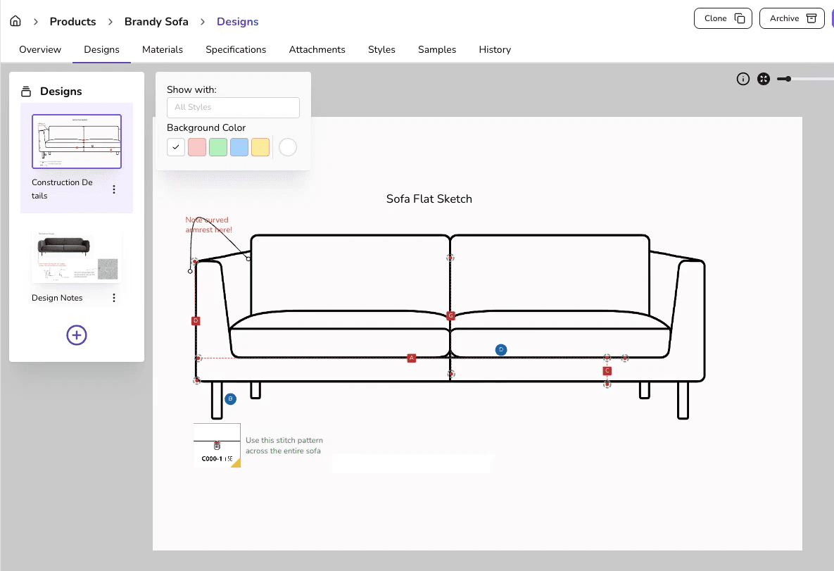 Loop in factories, track updates, and share finalized specs—all from one platform that’s built for clarity.